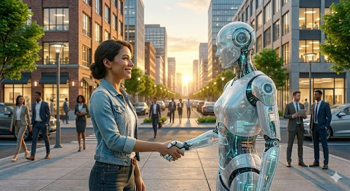 こちらは、Google Geminiを使って作ってもらった私とAIの関係をイメージする画像です。